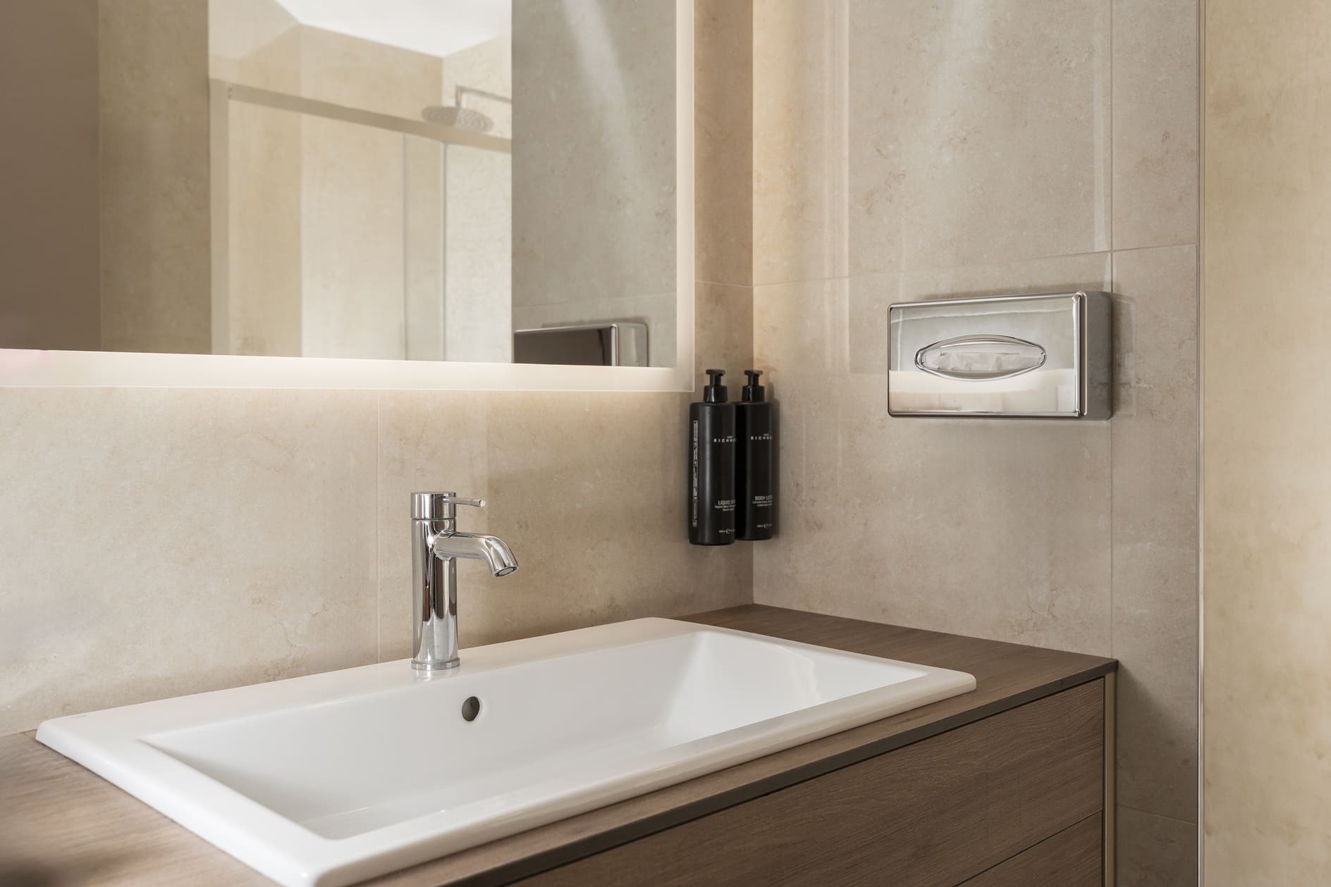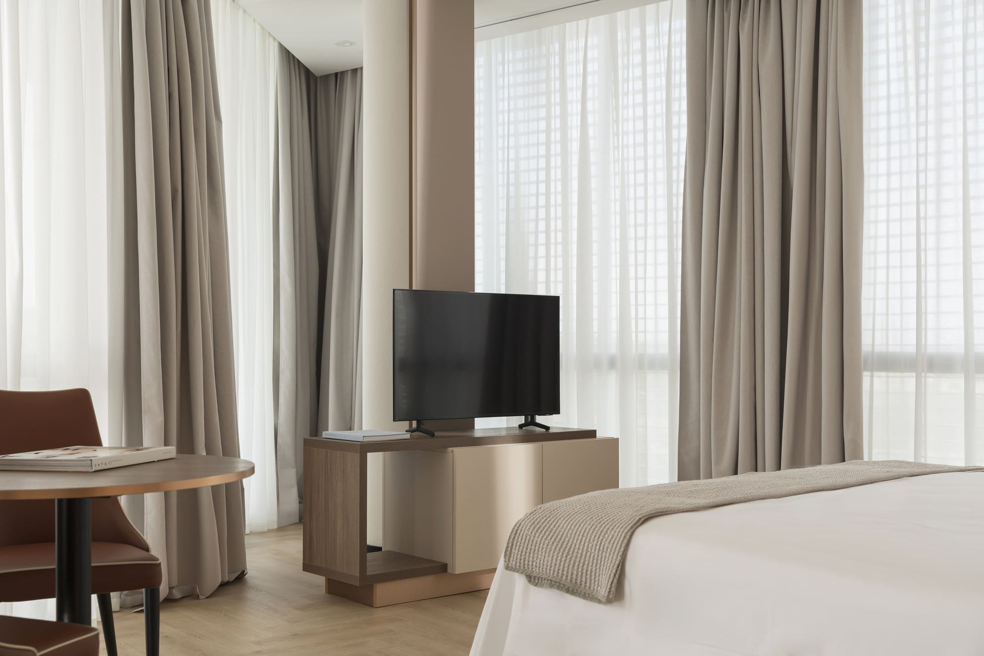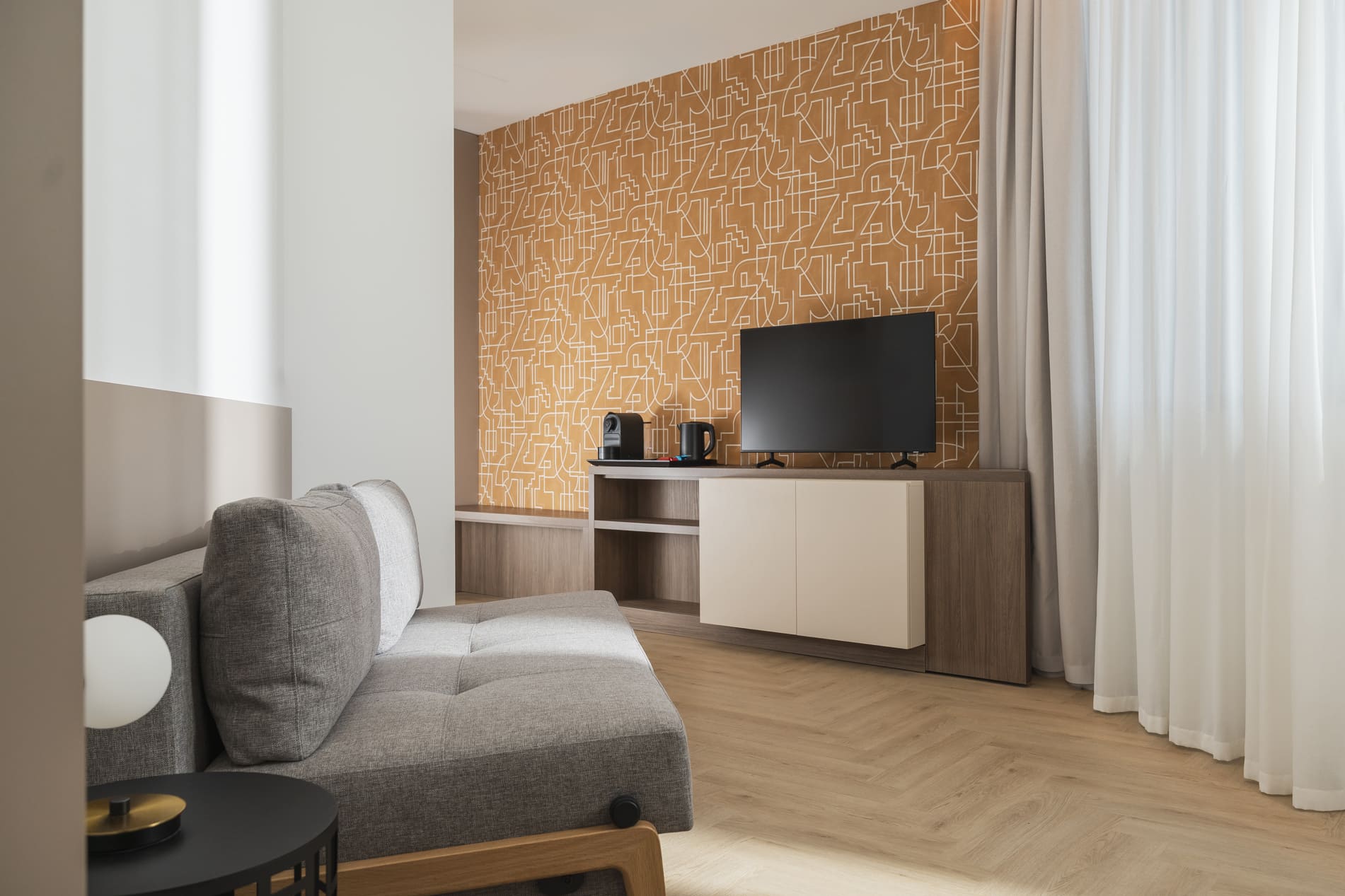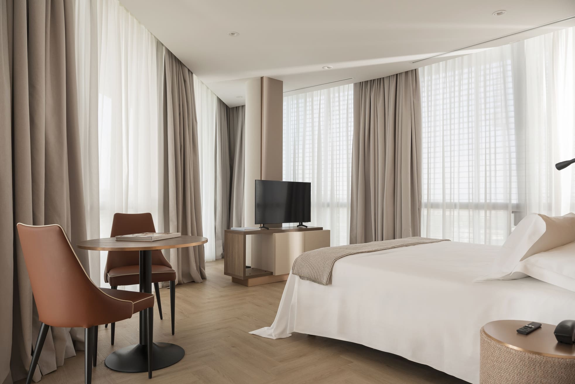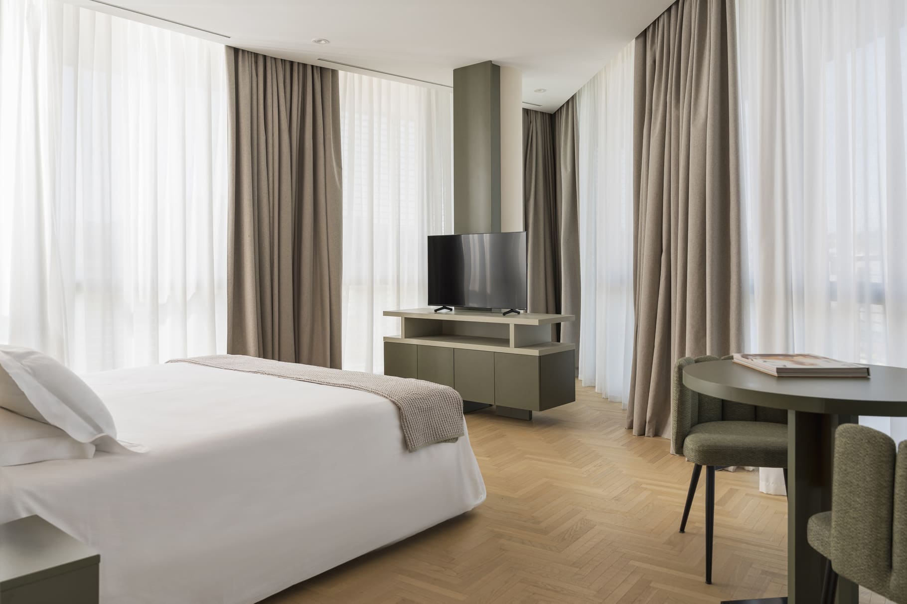 La Junior Suite accoglie gli ospiti in un ambiente elegante e moderno con due spazi distinti: la camera da letto, spaziosa e silenziosa, e un’anticamera, ideale come spazio di relax o di lavoro.